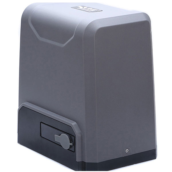 Automatizador para portones corredizos de hasta 1500 kg, motorreductor con diseño específicamente pensado para aplicarse en portones de gran porte y uso comercial, gran durabilidad y fuerza; caja reductora con Corona de bronce, montada en rulemanes, Eje principal de salida macizo, Sin fin tallado en el propio eje (evita posible desprendimiento del mismo), motor de alta potencia, lo que asegura gran potencia y un alto rendimiento. Motor protegido por relevo térmico-Fusible térmico incorporado en el bobinado. Destrabe manual por corte de energía por palanca y llave con código único.